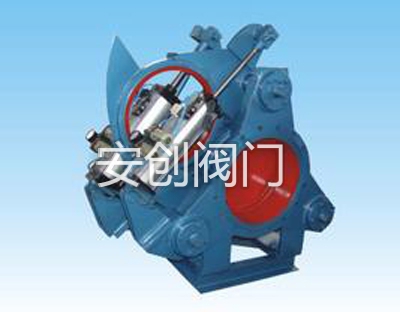 F643X氣動(dòng)扇形盲板閥,又稱氣動(dòng)扇形眼鏡閥,主要由左閥體、右閥體、絲桿、閘板、密封圈、杠桿、汽缸等零件組成,并由底座、支撐柱構(gòu)成一個(gè)剛性結(jié)構(gòu)體。閥門中設(shè)有夾緊、松開汽缸和翻板汽缸,夾緊、松開汽缸通過杠桿和絲桿螺旋驅(qū)動(dòng)左、右閥體完成松開、夾緊動(dòng)作,翻板汽缸驅(qū)動(dòng)閘板完成開關(guān)動(dòng)作。橡膠密封圈鑲鉗在閘板上,具有耐高溫、密